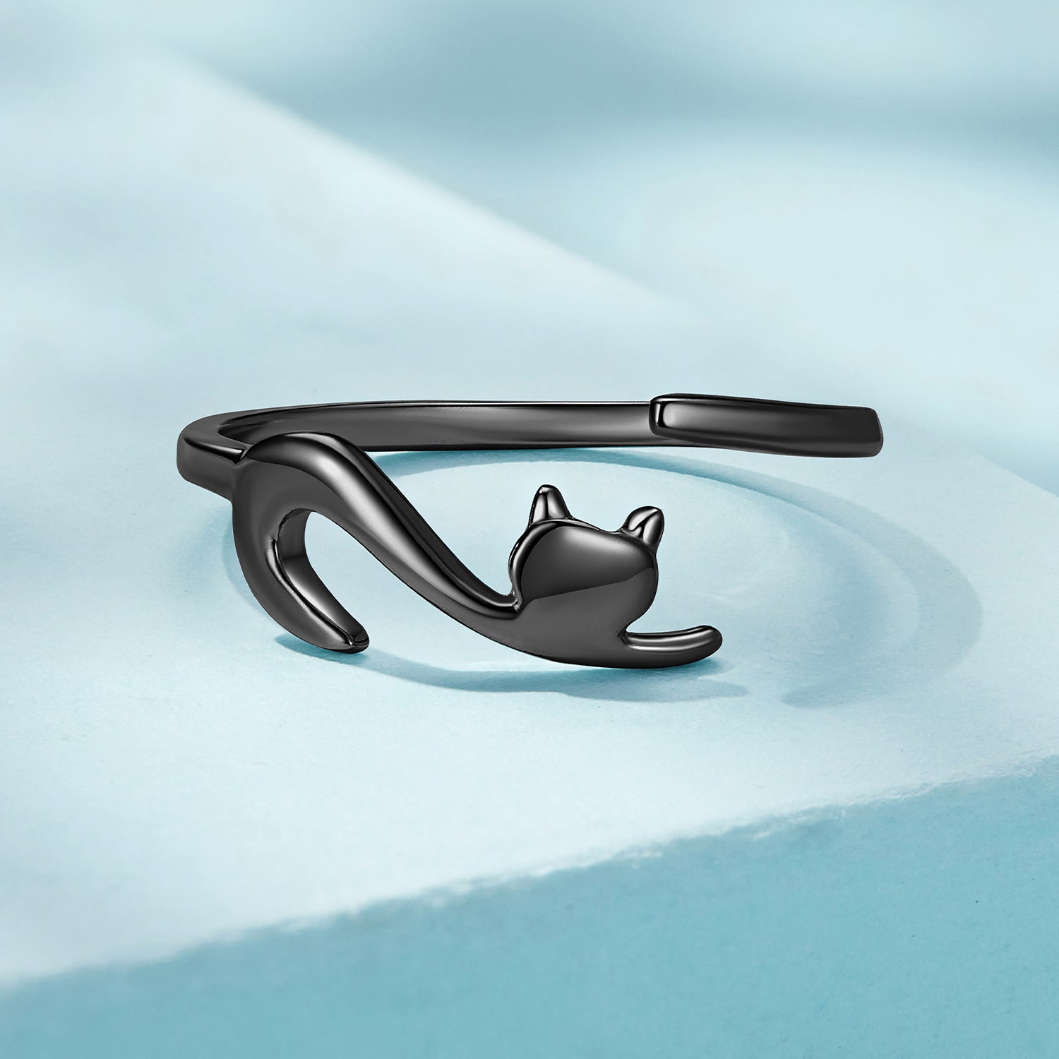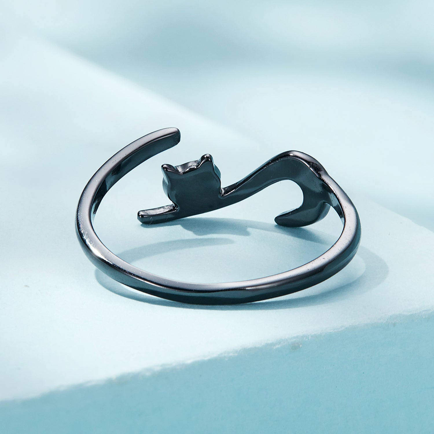 Ez a minimalista gyűrű drámai fekete kivitelben a modern művészeti tervezés és a játékos elegancia tökéletes ötvözete. Az ékszer nyitott konstrukciójával hódít, mely egy kecses macskasziluettből áll, finoman körülölelve az ujjat. A sötét felület misztikus és kifinomult megjelenést kölcsönöz a gyűrűnek, miközben hangsúlyozza a macska testének sima íveit – a hegyes fülektől az elegánsan ívelt farokig. Tiszta és légies kialakításának köszönhetően nagyon diszkréten, mégis észrevehetően hat a kézen.